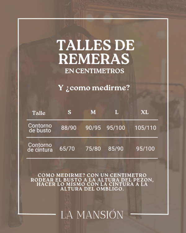 Si elegis la opcion " A MEDIDA" déjanos tus medidas al final de la compra.